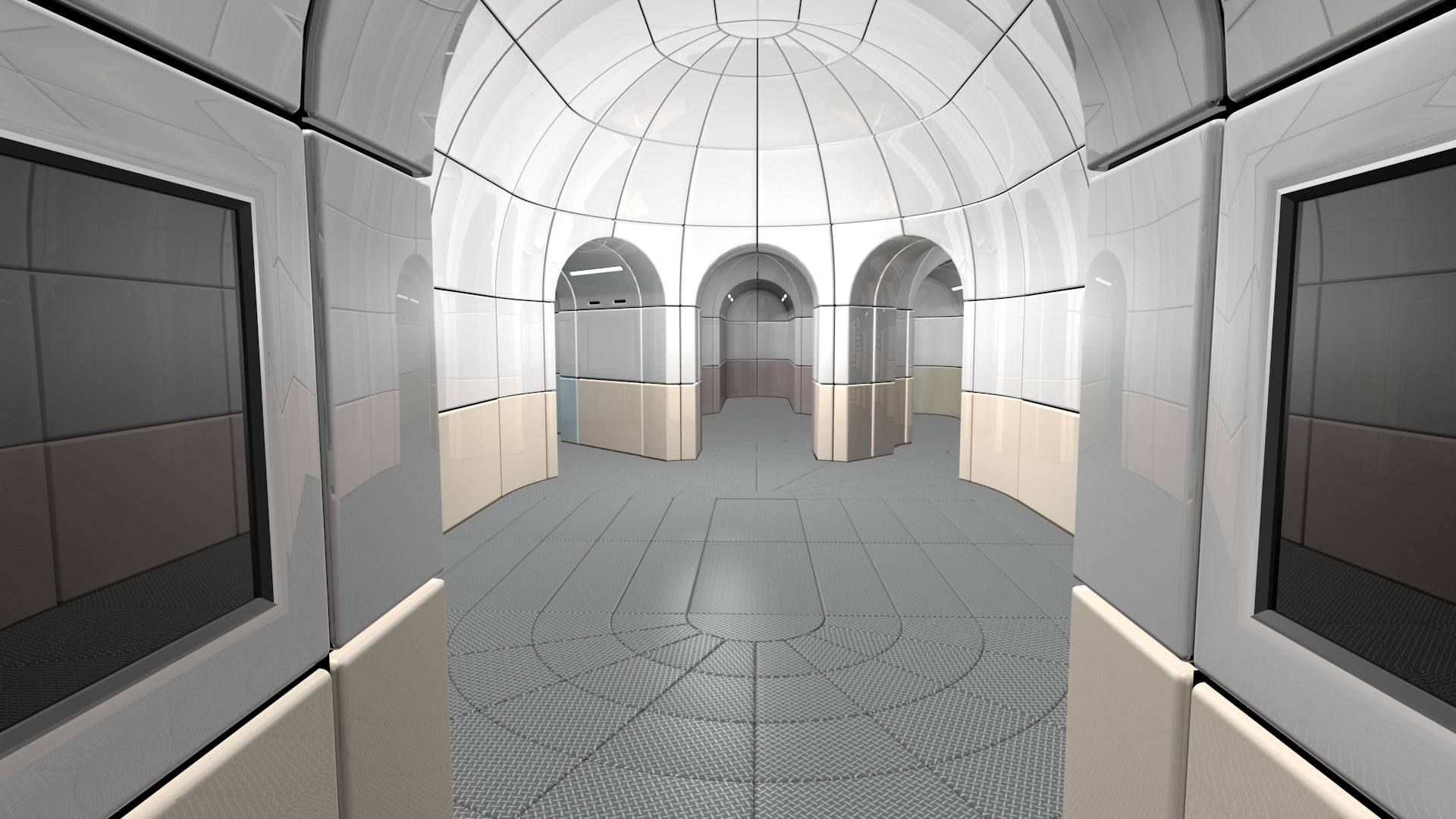 An 8 foot dome can replace the end cap of a pod to create a larger bedroom space for larger size beds.
