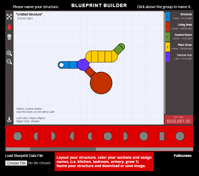 Layout your structure, color your sections and assign names. (i.e. kitchen, bedroom, armory, grow 1)